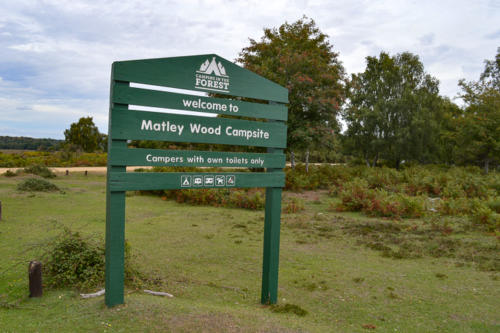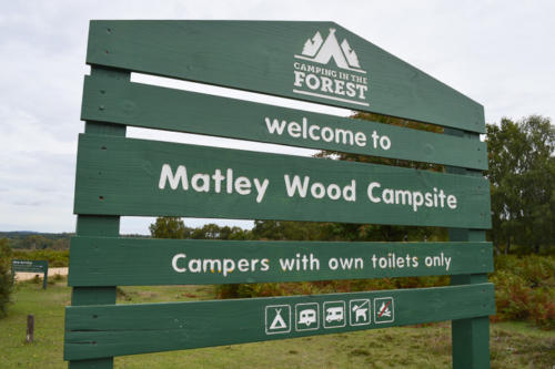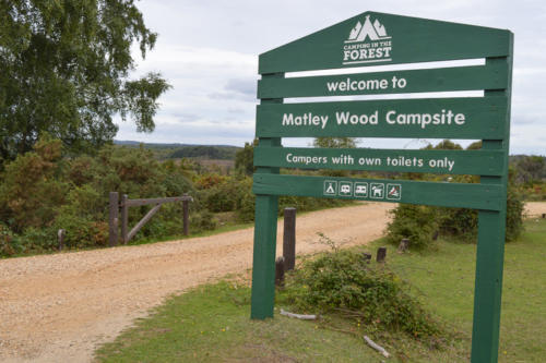 The campsite is roughly just two miles east of Lyndhurst, after you take the B3056 road to Beaulieu. If coming from the direction of Lyndhurst, you will pass open heathland on the left hand side of the road. Matley Wood is amongst the main set of trees you first see on the left, as the heathland ends. Be sure to take the first gravel entrance into the campsite as the second one is just a car park.